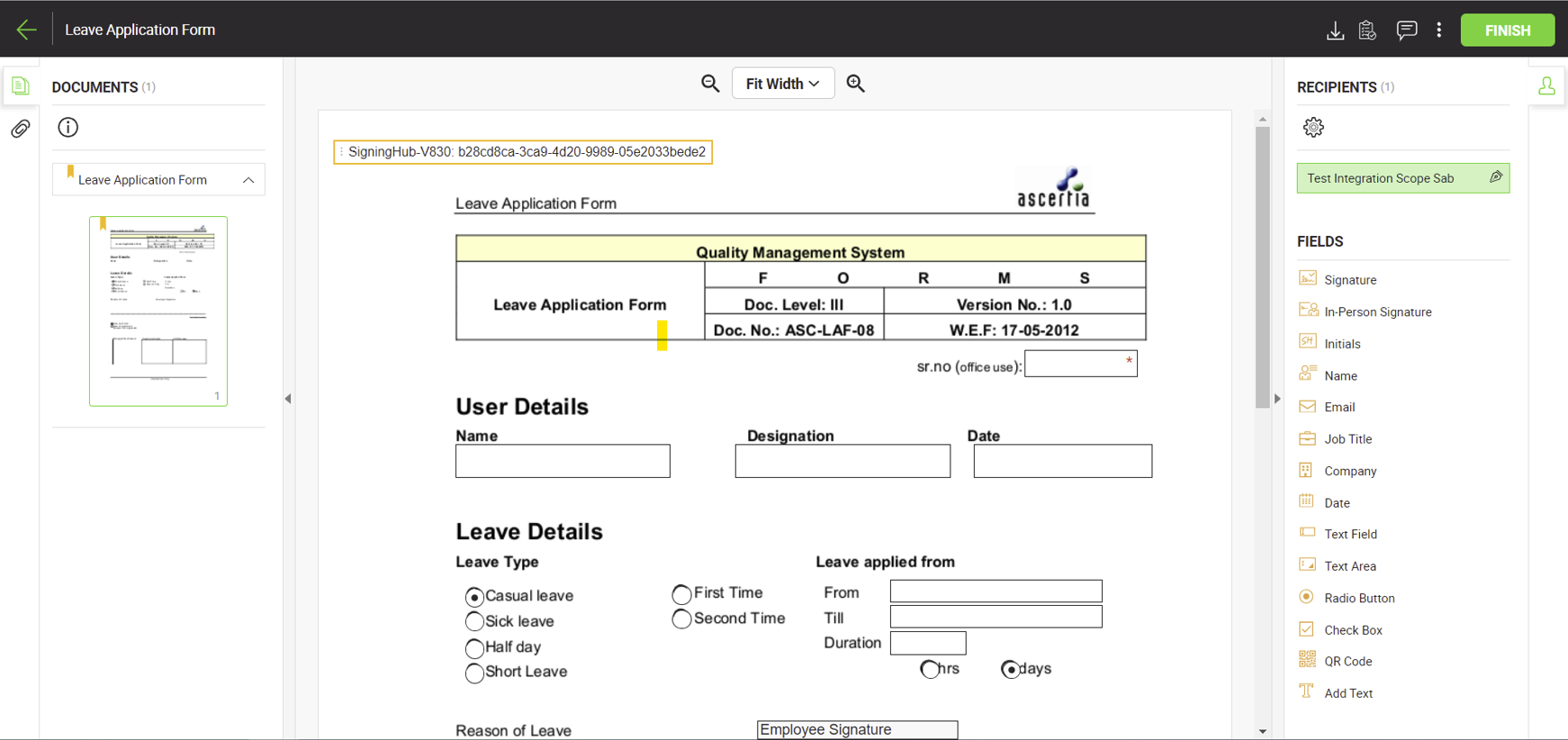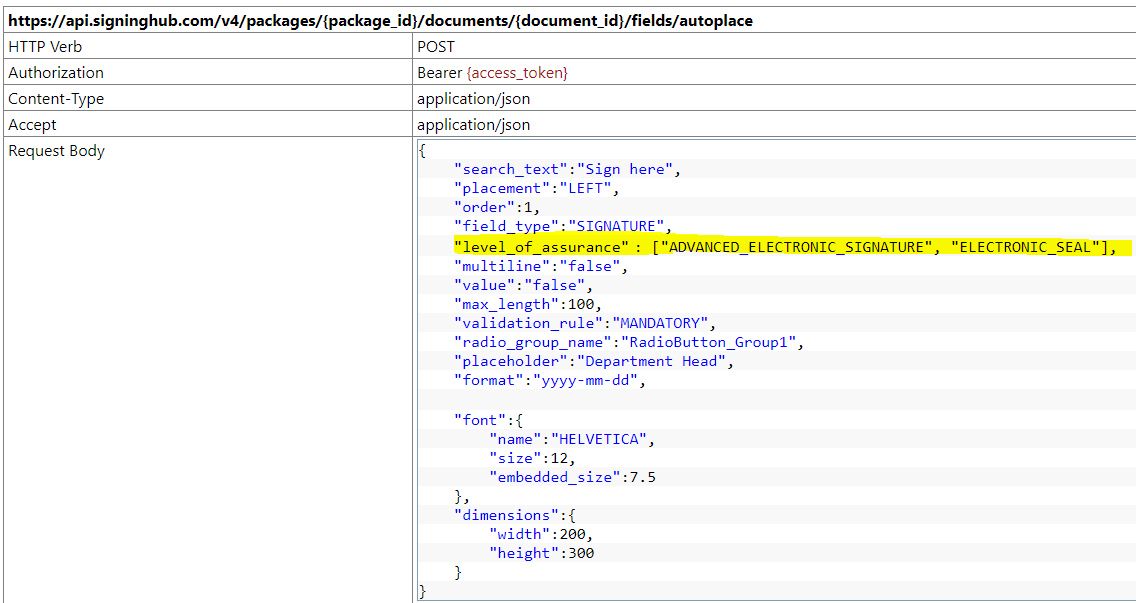 From 779, Electronic Signature Field has been replaced by with Signature Field, and which capacity should be used at the time of signing is controlled via the level of assurance.