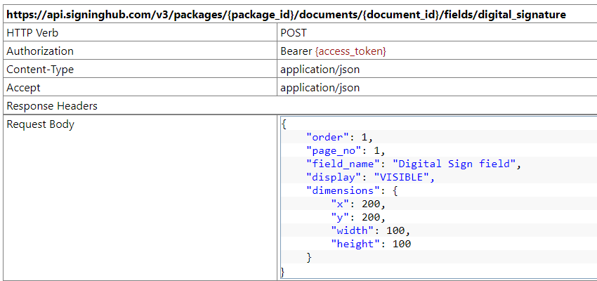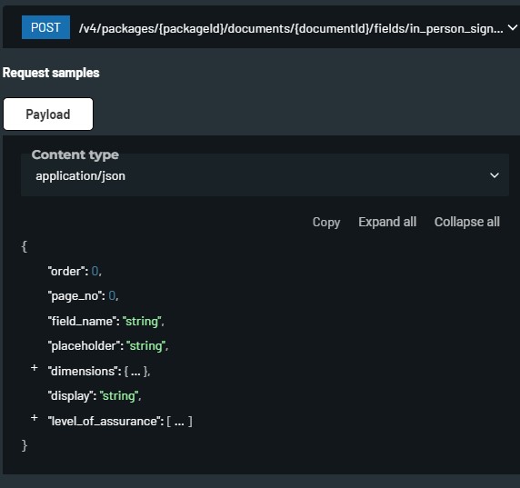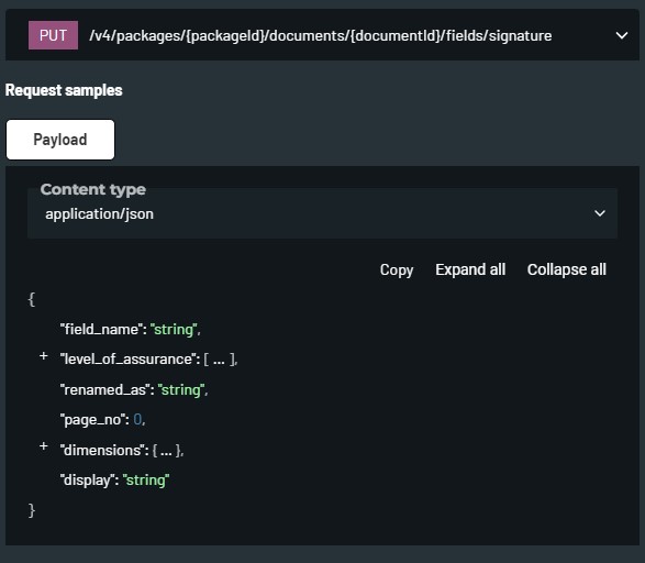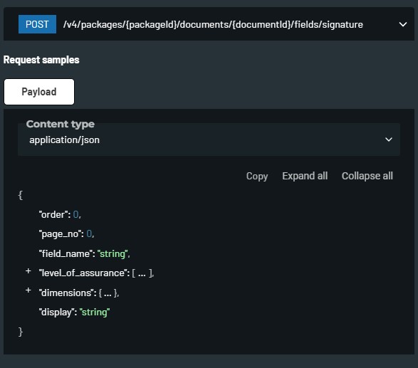 Alternatively if due to the dynamic nature of the document you cannot apply a template and want to add different fields, e.g. text field, checkbox, initials, signature fields etc., then you can add them dynamically by providing the X, Y, Width, Height coordinates, package ID, document ID, page number and assign to a user. Click here to learn more.
