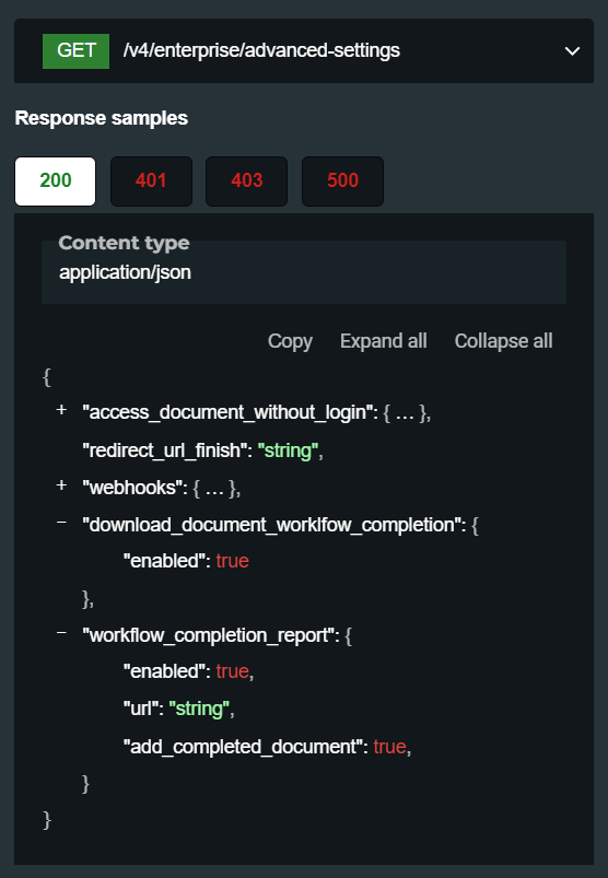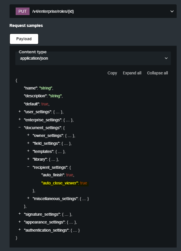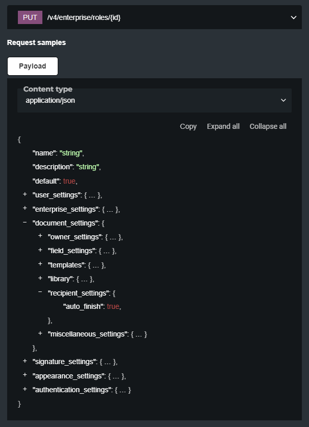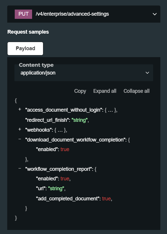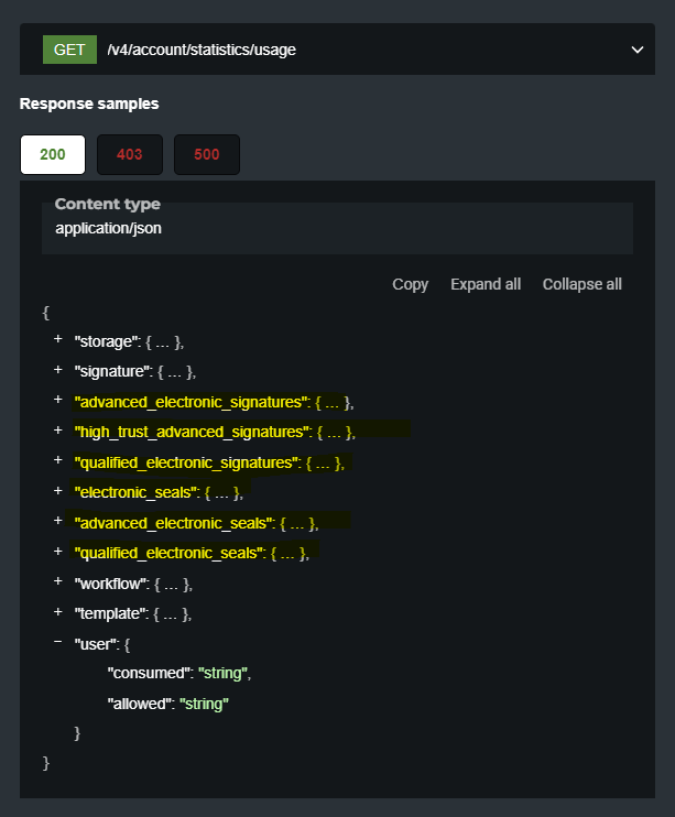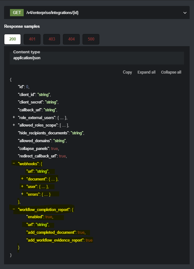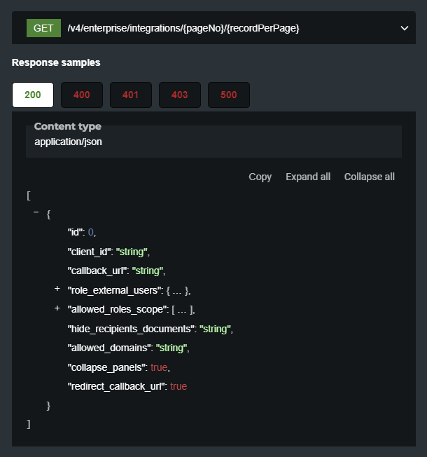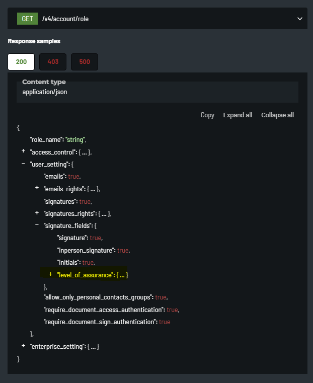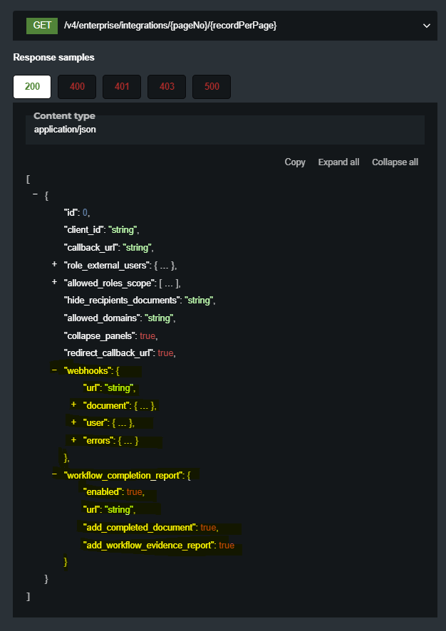 | features required | Array of strings (PLAN_FEATURES) Items Enum: "ALLOW_FORM_FIELDS" "ALLOW_REVIEWER" "ALLOW_ATTACHMENTS" "ALLOW_INITIALS_FIELDS" "ALLOW_INPERSON_FIELDS" "ALLOW_INTEGRATION" "ALLOW_BULK_SIGNING" "SERVICE_PLAN_FEATURE_CLOUD_DRIVES" "ALLOW_EDITOR" "ALLOW_SEND_A_COPY" "ALLOW_ELECTRONIC_SEAL" "ALLOW_DOCUMENTS_ARCHIVE" List of features available in the service plan, possible values are mentioned above.ALLOW_ELECTRONIC_SEAL and ALLOW_INTEGRATION can be updated only to the "Enterprise" service plan. |