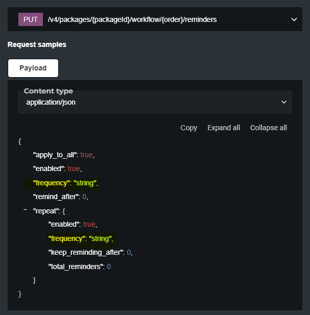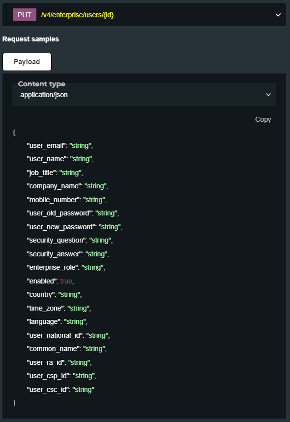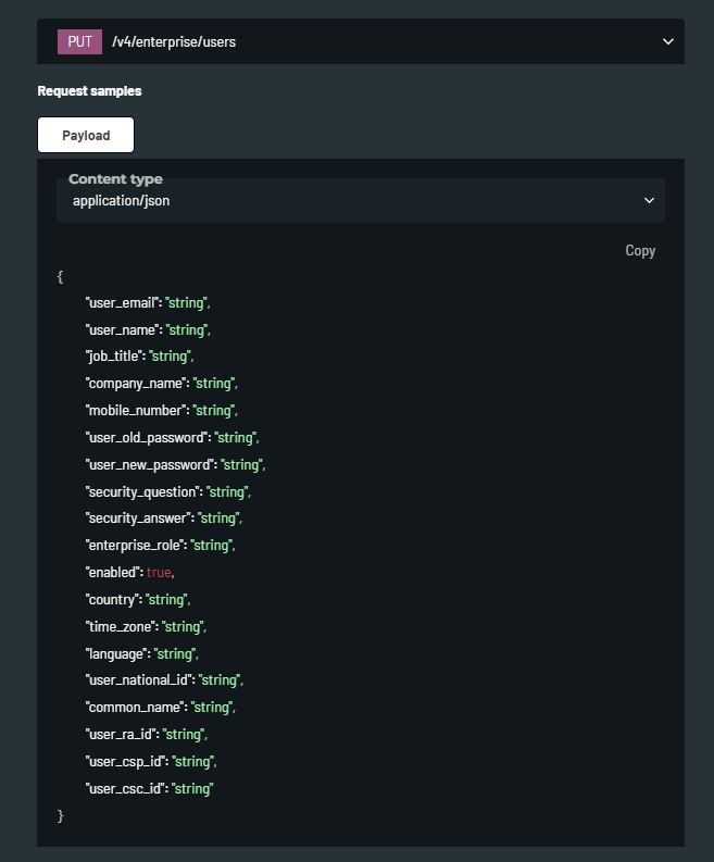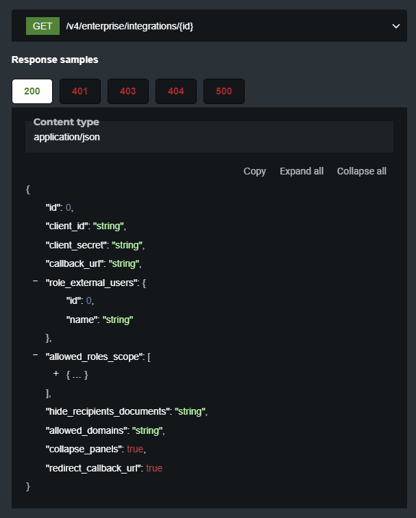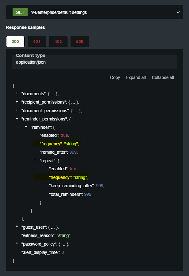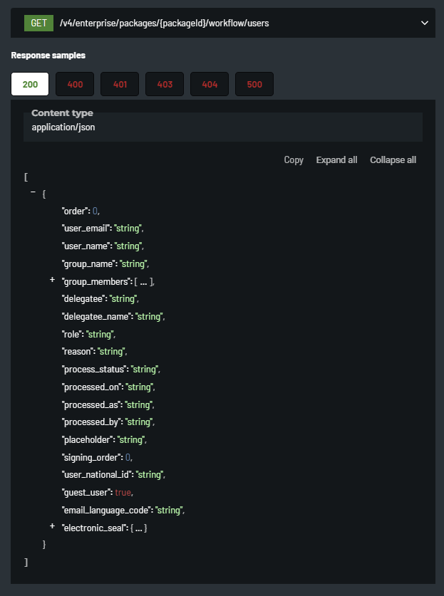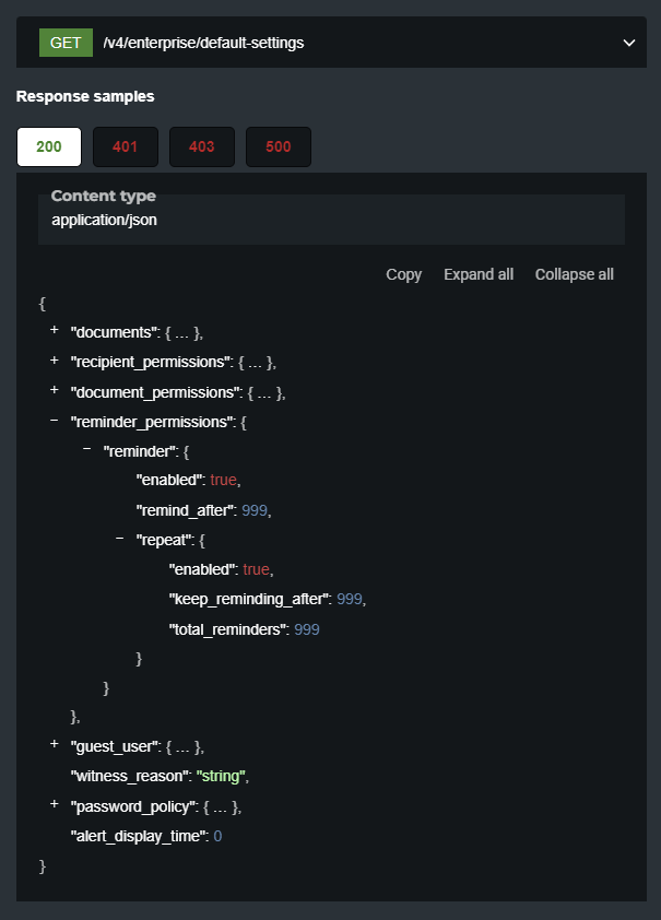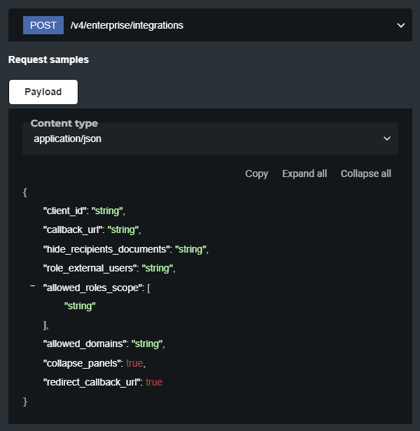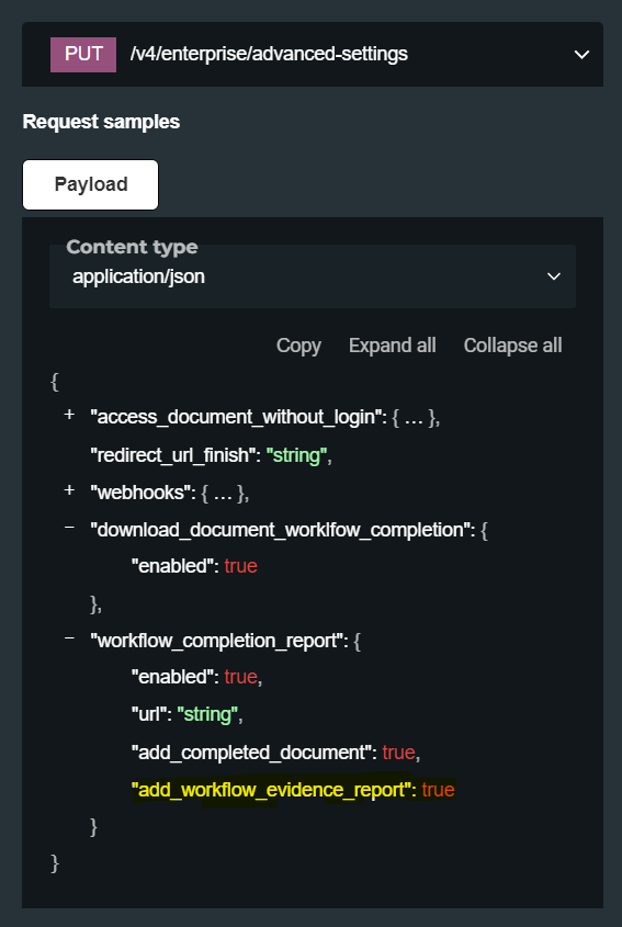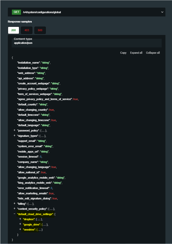 | features required | Array of strings (PLAN_FEATURES) Items Enum: "ALLOW_FORM_FIELDS" "ALLOW_REVIEWER" "ALLOW_ATTACHMENTS" "ALLOW_INITIALS_FIELDS" "ALLOW_INPERSON_FIELDS" "ALLOW_INTEGRATION" "ALLOW_BULK_SIGNING" "SERVICE_PLAN_FEATURE_CLOUD_DRIVES" "ALLOW_EDITOR" "ALLOW_SEND_A_COPY" "ALLOW_ELECTRONIC_SEAL" "ALLOW_DOCUMENTS_ARCHIVE" List of features available in the service plan, possible values are mentioned above.ALLOW_ELECTRONIC_SEAL and ALLOW_INTEGRATION can be updated only to the "Enterprise" service plan. |