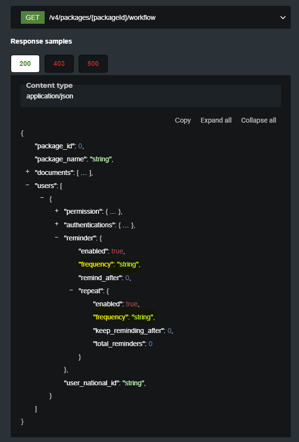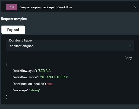 package_id should be same as used in step 9 and the document_id is the one the user got in the response of step 8.