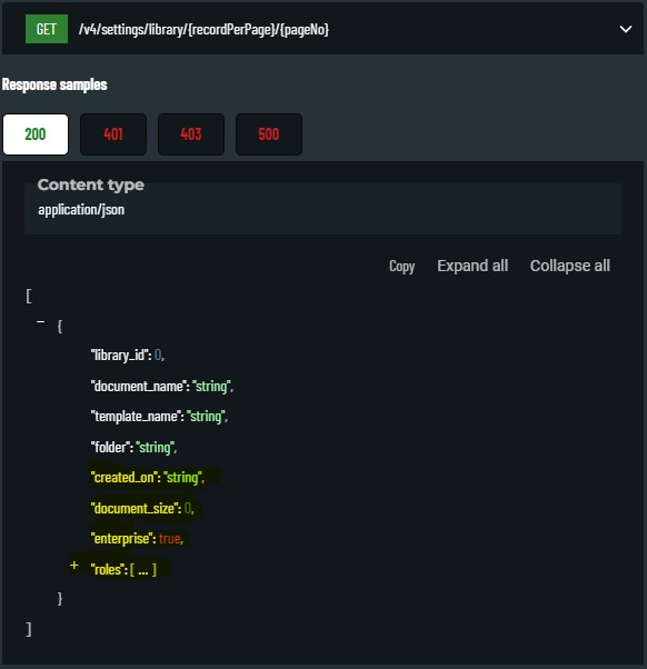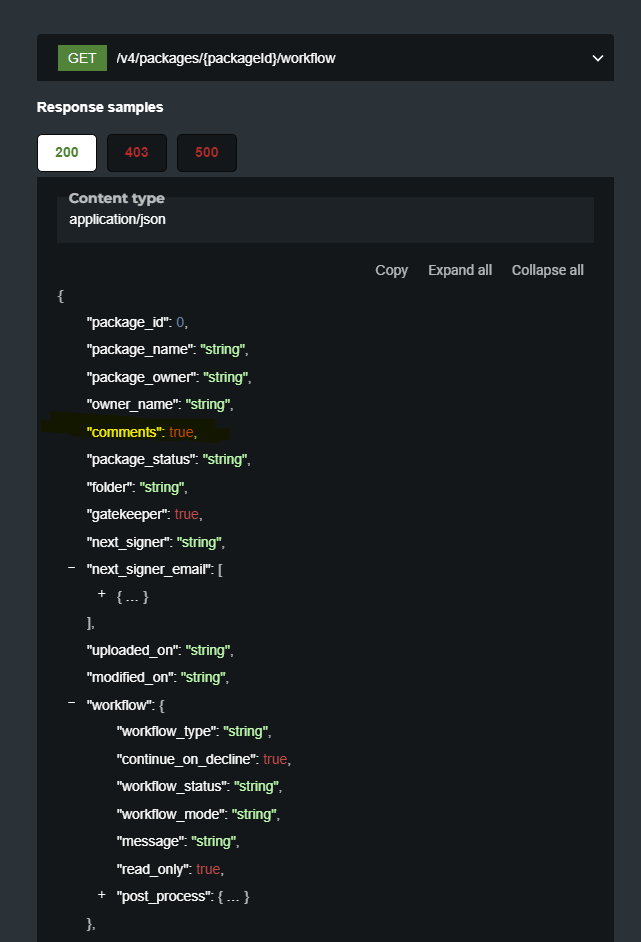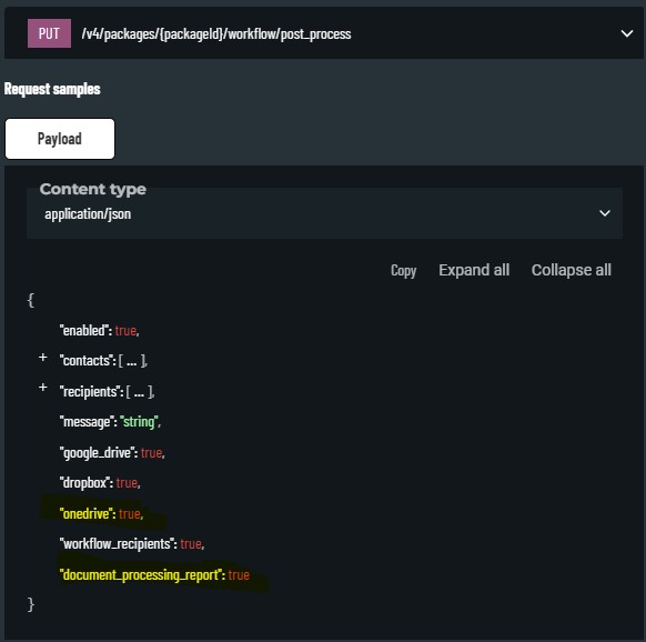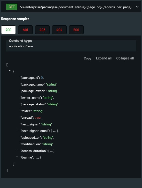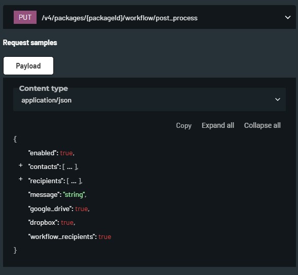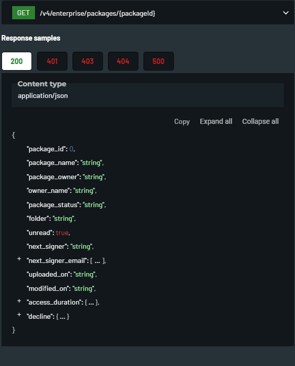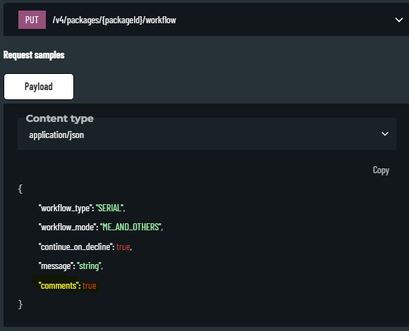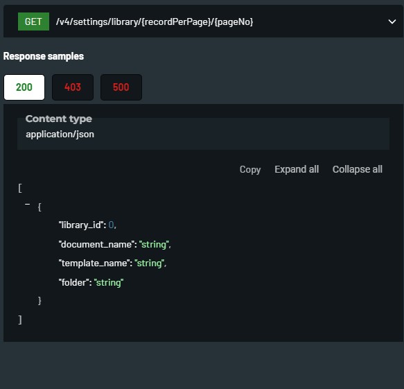 package_id is provided in the URL which should be the same as found in the previous call. The document ID must be provided as document_id in the resource URL to identify the library document to be copied.