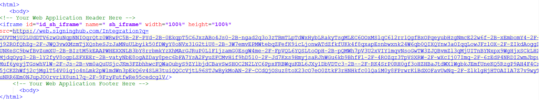 In this mode of integration, users interact with the business web application. At some point, there is a need to view and sign a document. For ease of use, the user does not need to register or login in order to view and sign the document. In tight integration, the web application uses iframe technology to embed the SigningHub view and sign page within an existing webpage.