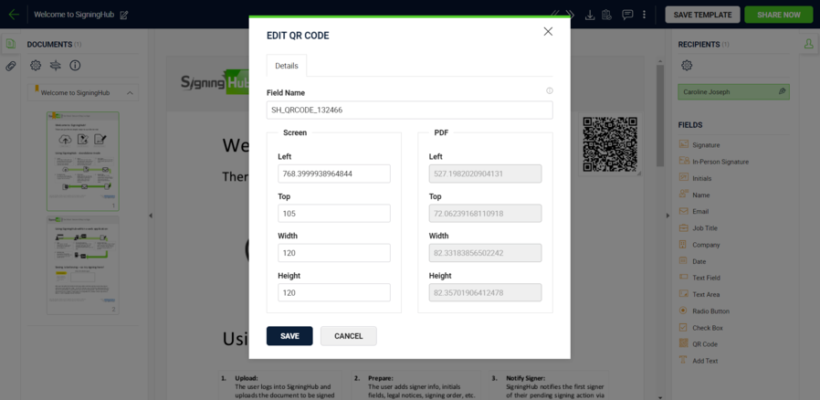 SigningHub enables you to add a QR Code to documents to help simplify signature verification.