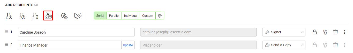 Add recipients through a CSV file