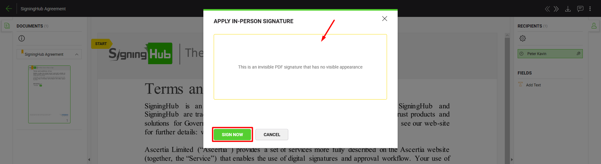 - Click the "Sign Now" button.