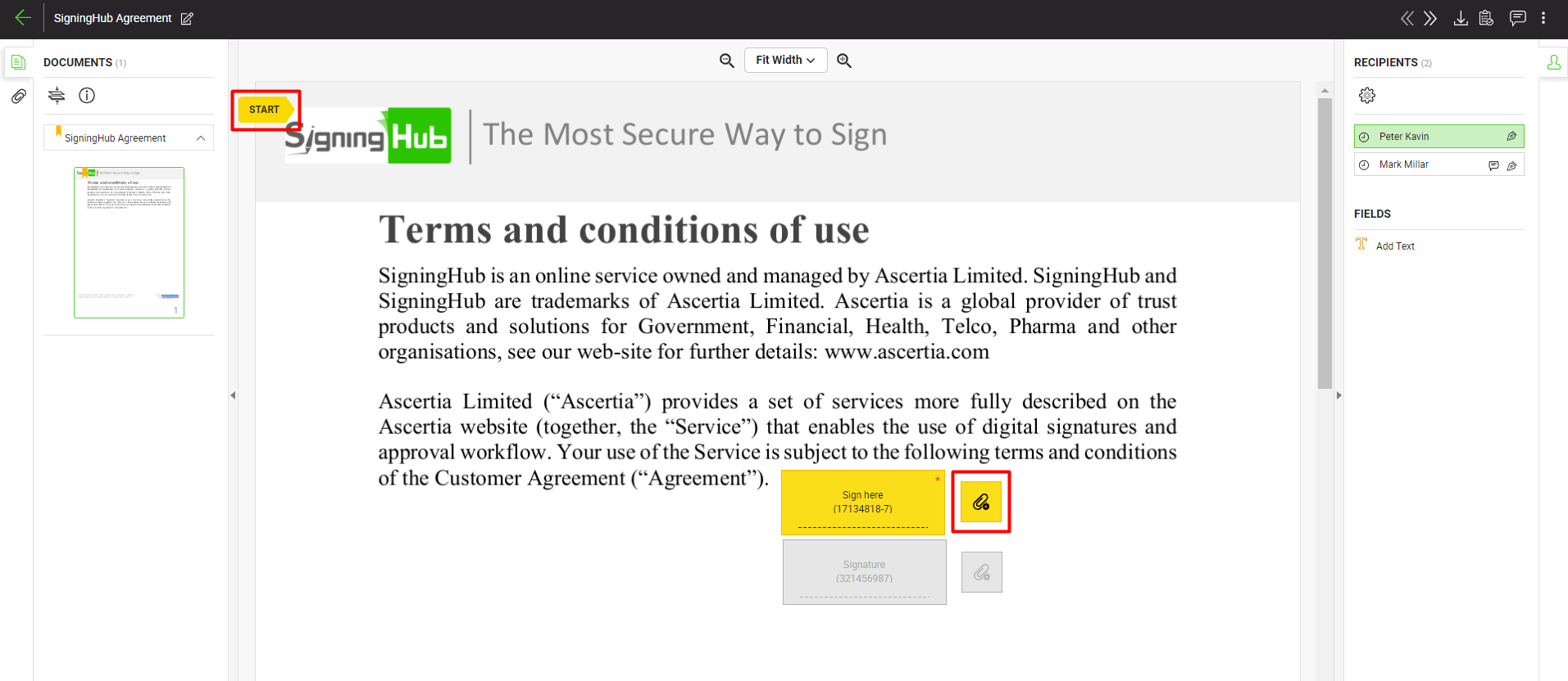 - Click the "Start" pointer to begin adding your attachment. The guiding pointer will start blinking in the (yellow-orange color) attachment field assigned to you.