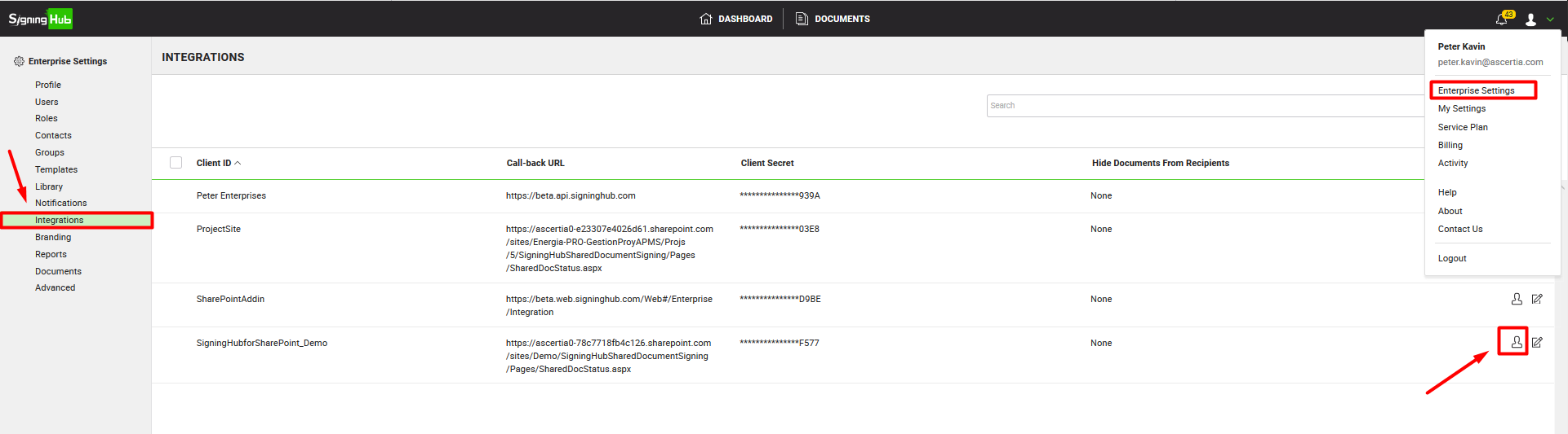 - Click the "Enterprise Settings" option.