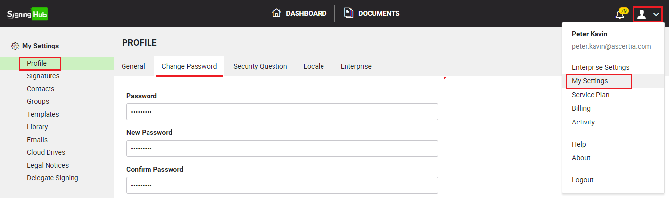 - Complete the fields accordingly, i.e. specify your current password, and then add and confirm your new password.