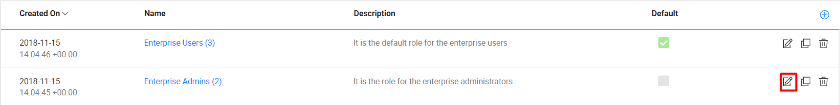 - Search and select the role to edit and click the edit icon