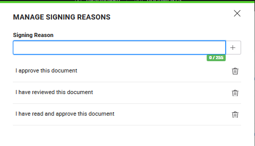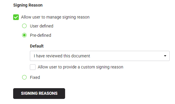 Manage Signing Reasons |