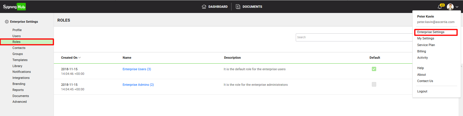 - Choose the "Roles" option from the left menu.