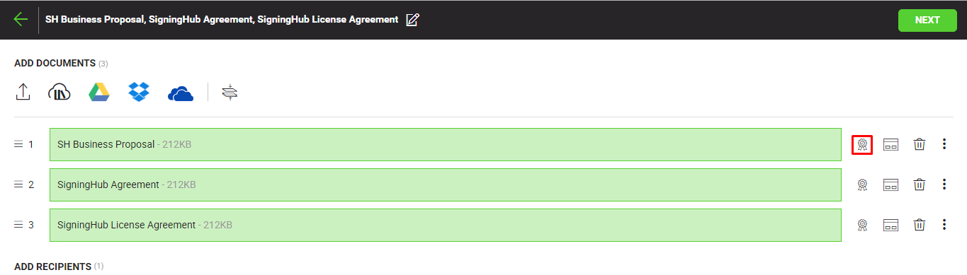 SigningHub lets you certify your digital signature. The certified signature is used to restrict the recipients to perform only the specific changes in a document, as system wont allow them to perform any other changes.