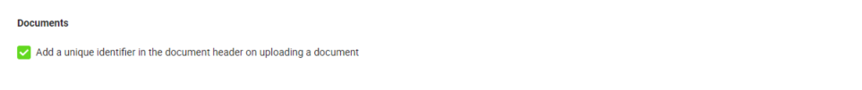 Select this option to add a unique identifier field by default in the PDF documents header on Upload. A unique identifier will remain the same for all the documents in a single document package of a workflow.