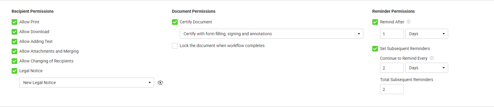 - Recipient, Document, and Reminder Permissions