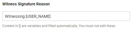 Reason that will be used by your enterprise users when they add a witness digital signature on a document. With this you can make the witness signing reason uniform across your enterprise.