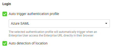 Enterprise users browse to your configured enterprise URL for login, and configured authentication profile is automatically triggered without the need for the user to identify themselves first. This means they do not have to submit their respective email address in order to start the authentication process.