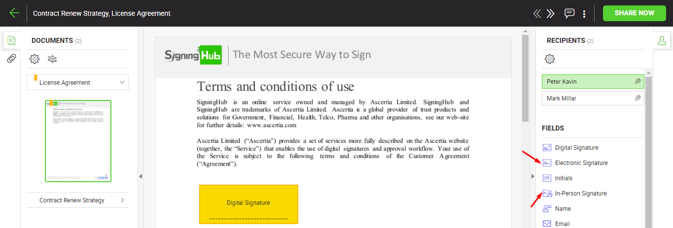 Field icons on document viewer
