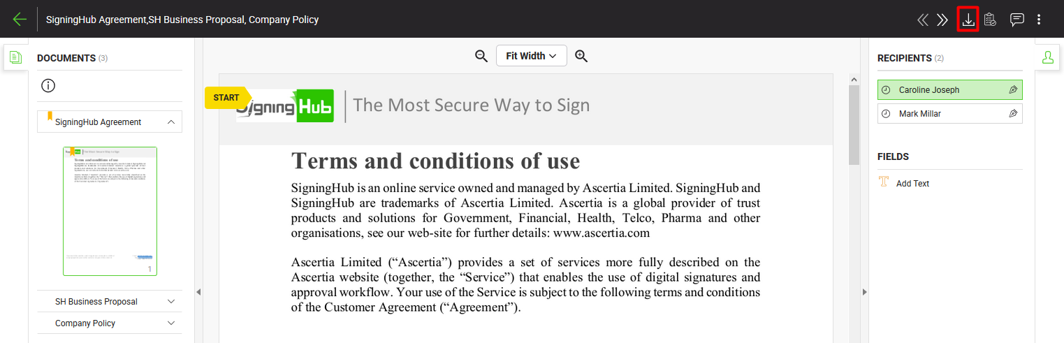 The text adding provision lets you add any textual notes in the document before signing. When specified, the added text will become the permanent part of the signed PDF document.