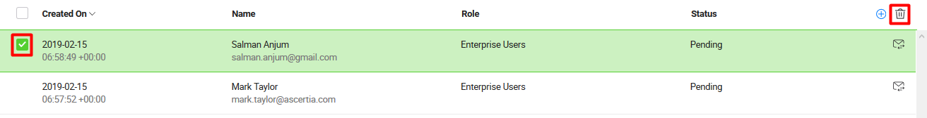 This status implies that the user has rejected your invitation. The enterprise admin has option to resend or remove the invitation. |