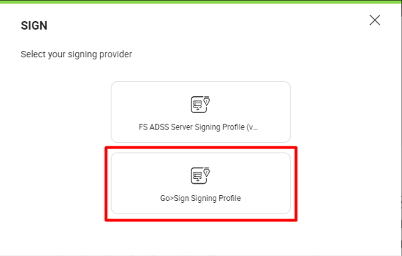 - Click on the signature field and select the Go>Sign Signing Server. Upon selecting the signing server, the system will fetch all the certificates from your local machine or the HSM token attached, based on the configurations of your Go>Sign profile.