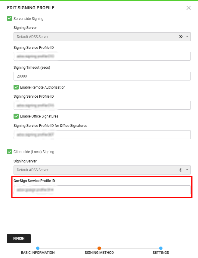 - Paste the earlier copied Go>Sign Profile ID, while creating a Go>Sign Profile in the ADSS, in the highlighted field below:
