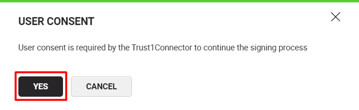 - Upon selecting the T1C Signing Server, the user consent dialog will appear. It will appear once for each user session. Click on the "Yes" button to proceed.
