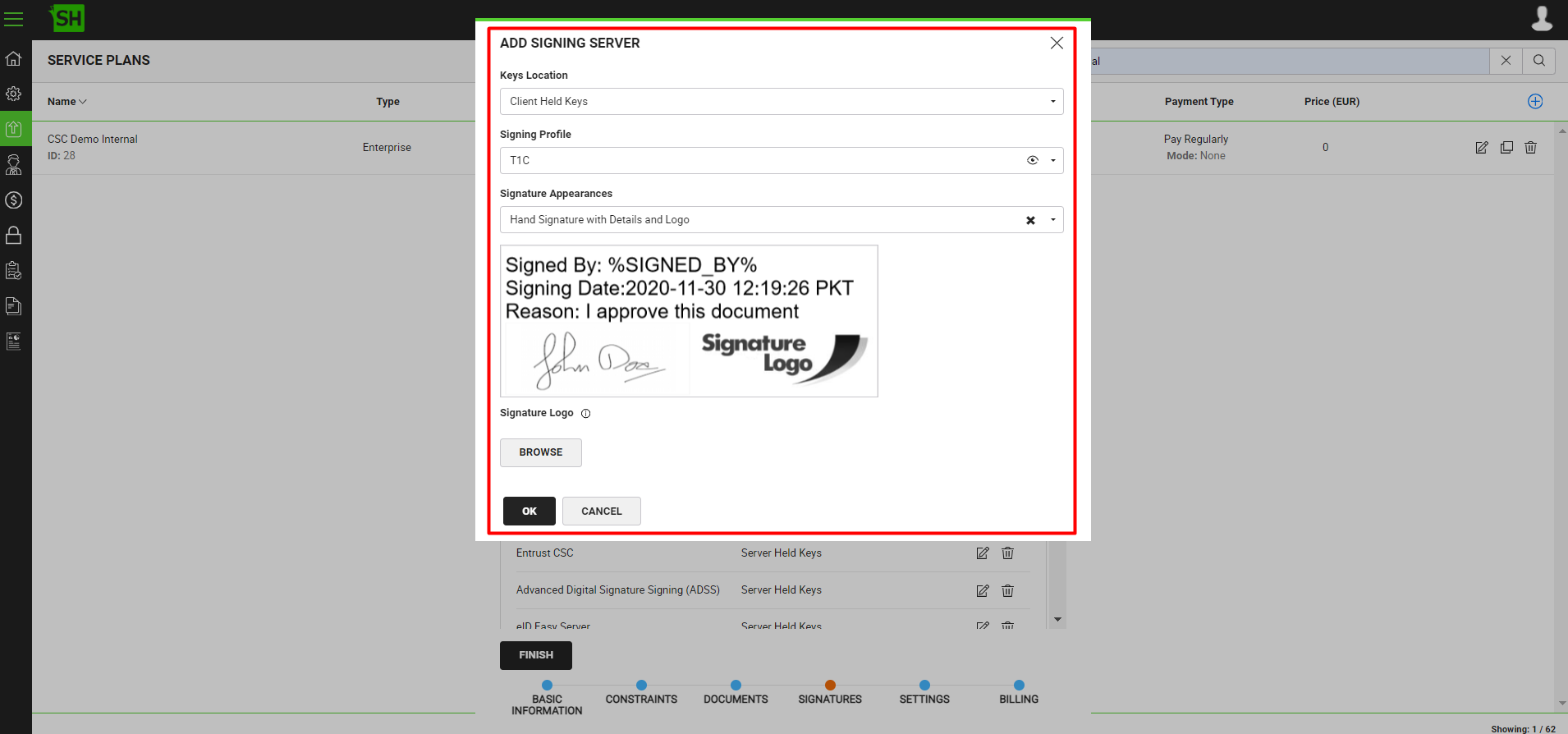 - Add Signing Profile to a Service Plan in SigningHub Admin