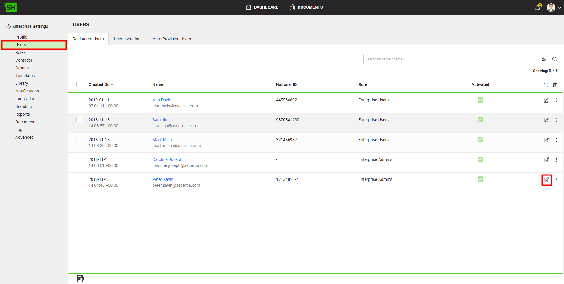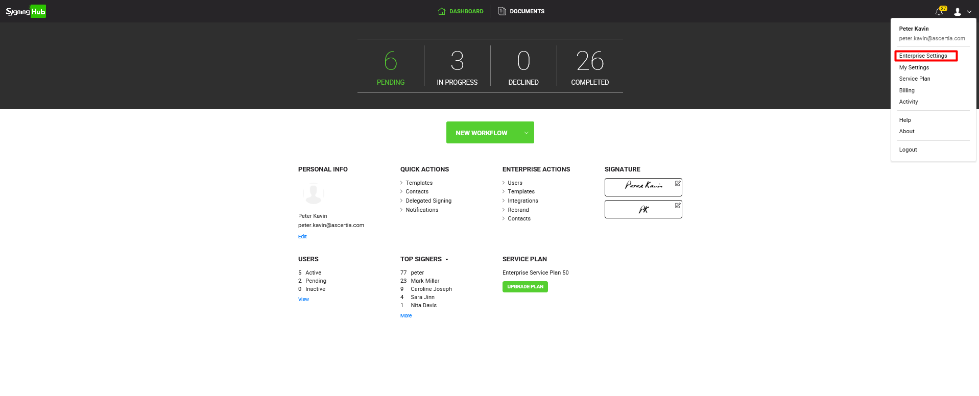 An Enterprise Administrator with the permissions to manage enterprise users in his role, can import a custom certificate for signing. Furthermore, the signing certificates appear at the time of signing. The signing capacities appear on the signing dialog as per the capacities available in a user's role. Enterprise Roles are described in detail here.