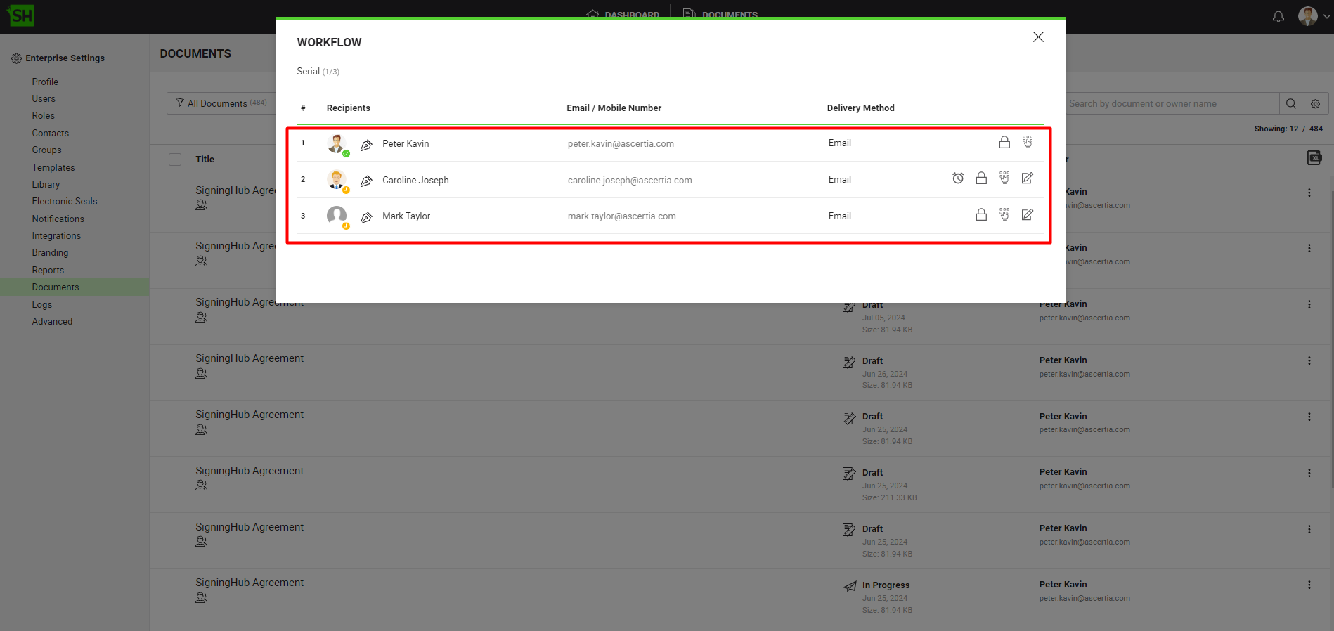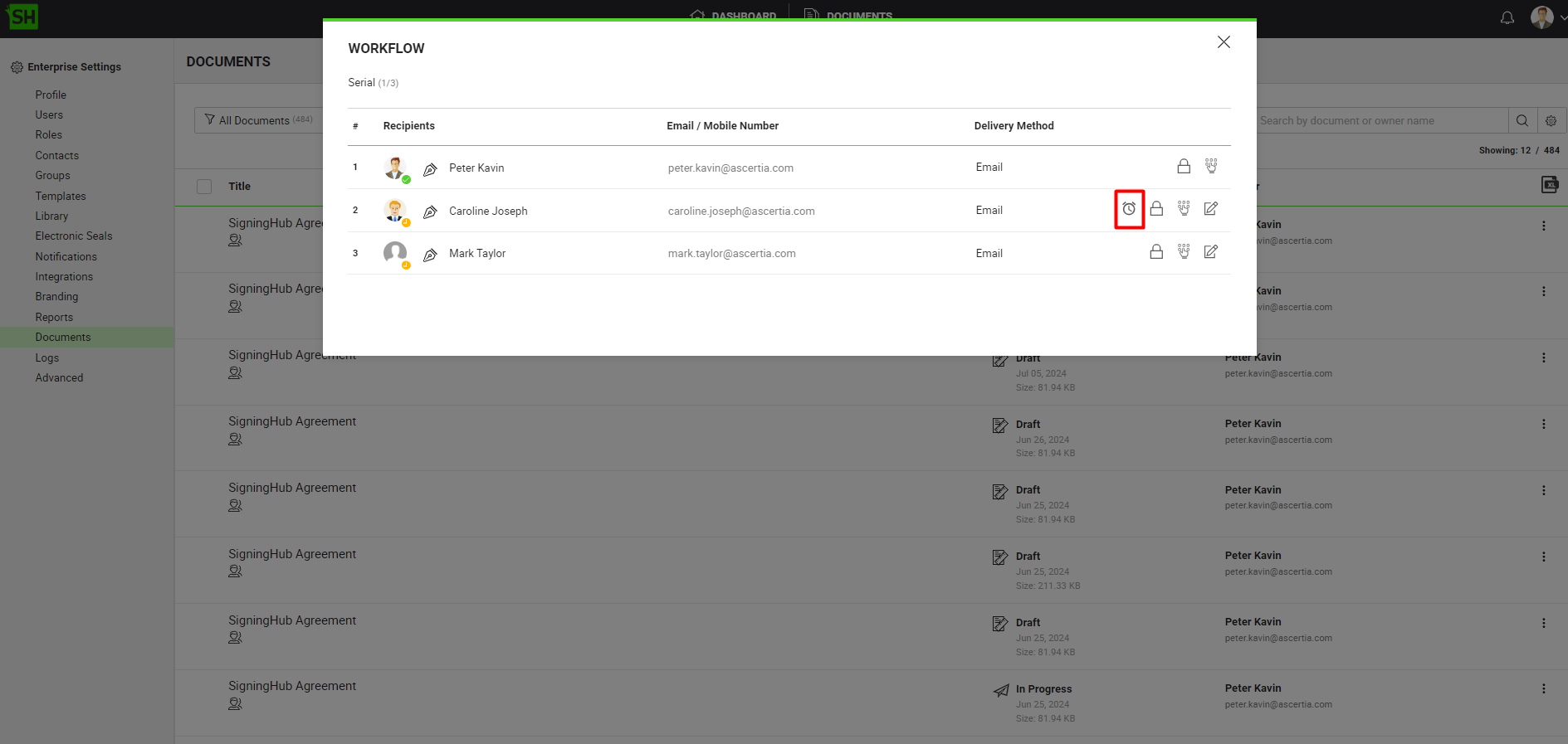 Similarly, you can also manually remind the next recipient to process the document. For this: