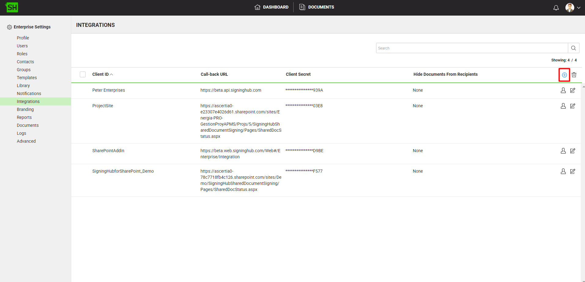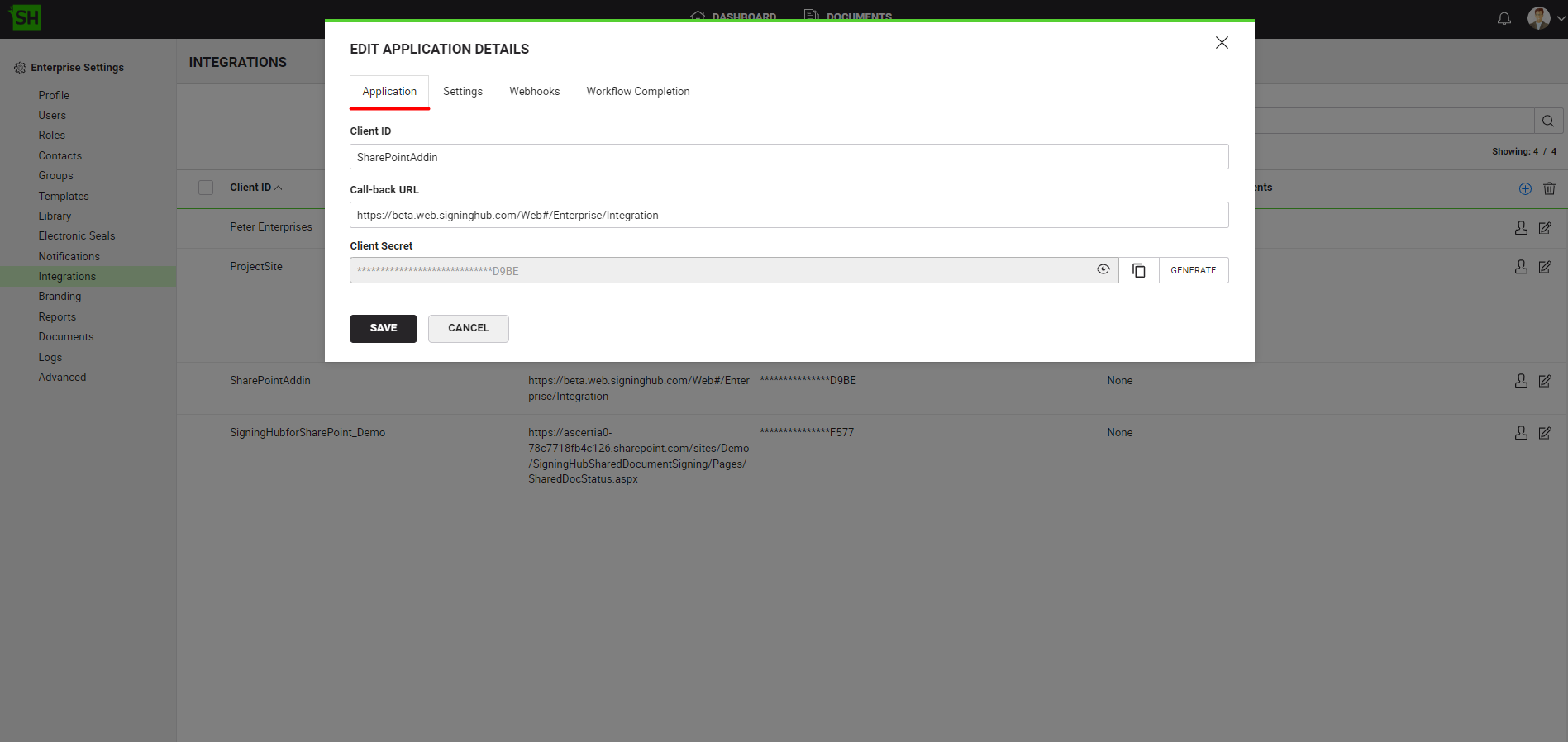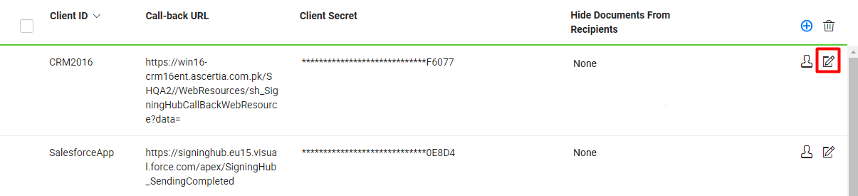 - ClientID cannot be set as 'MobileSDK' or 'MSOfficeApp', since it has been preoccupied by the SigningHub application for it's Mobile version and MS Office App.