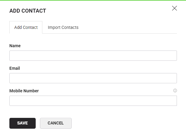- Specify the contact's name, email, and mobile number in the respective fields.