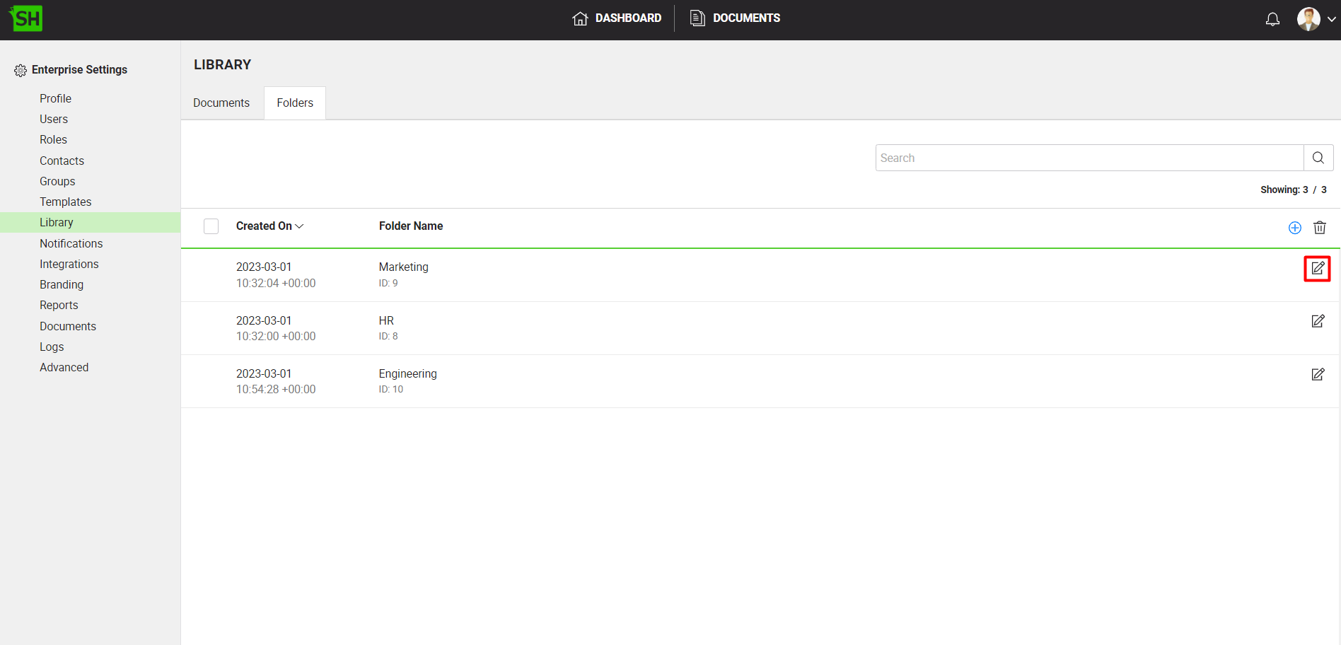 Manage your enterprise library folders