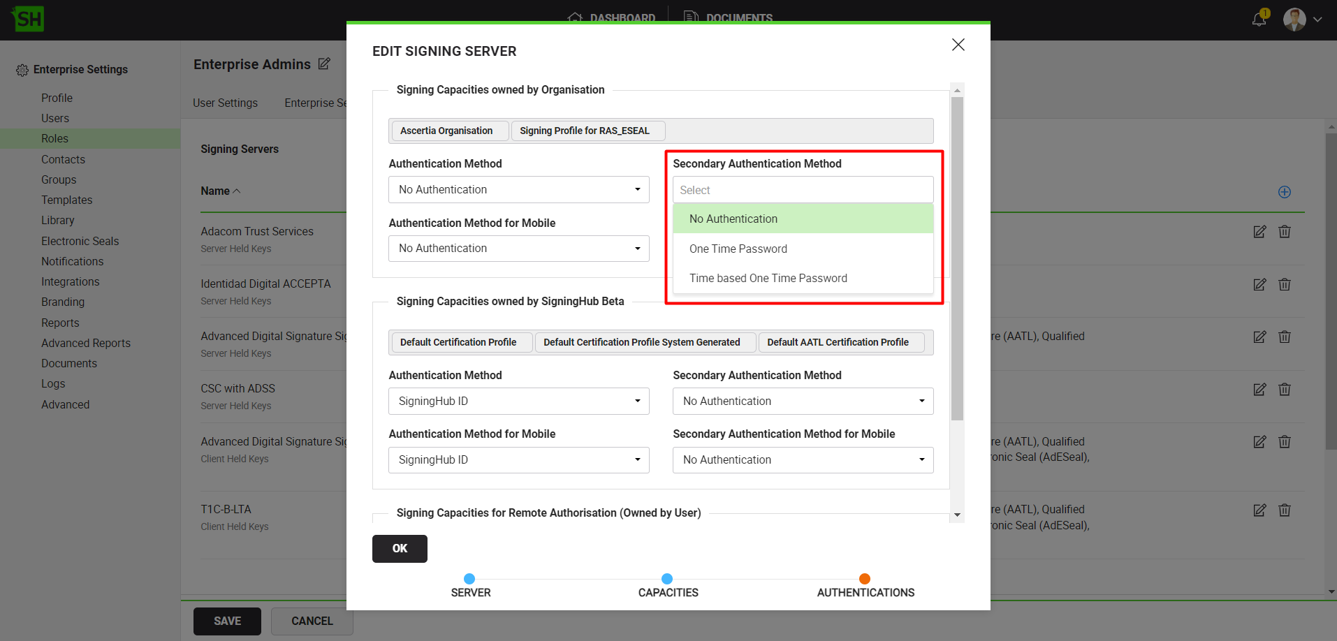 To see in detail, how to configure a secondary authentication method against a signing server in SigningHub, click here.