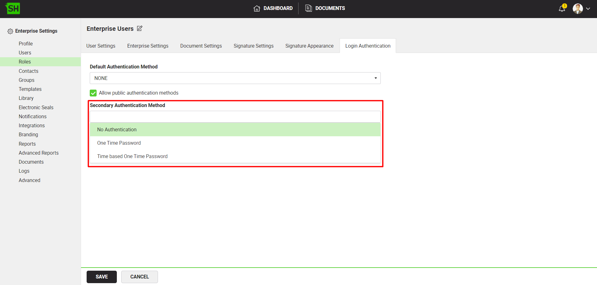 To see in detail, how to configure a secondary authentication method for login in SigningHub, click here.