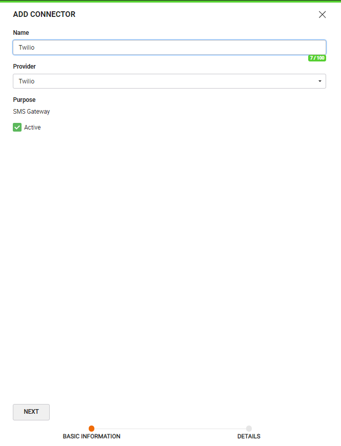 - In the "Basic Information" section, choose "Twilio" as the "Provider".