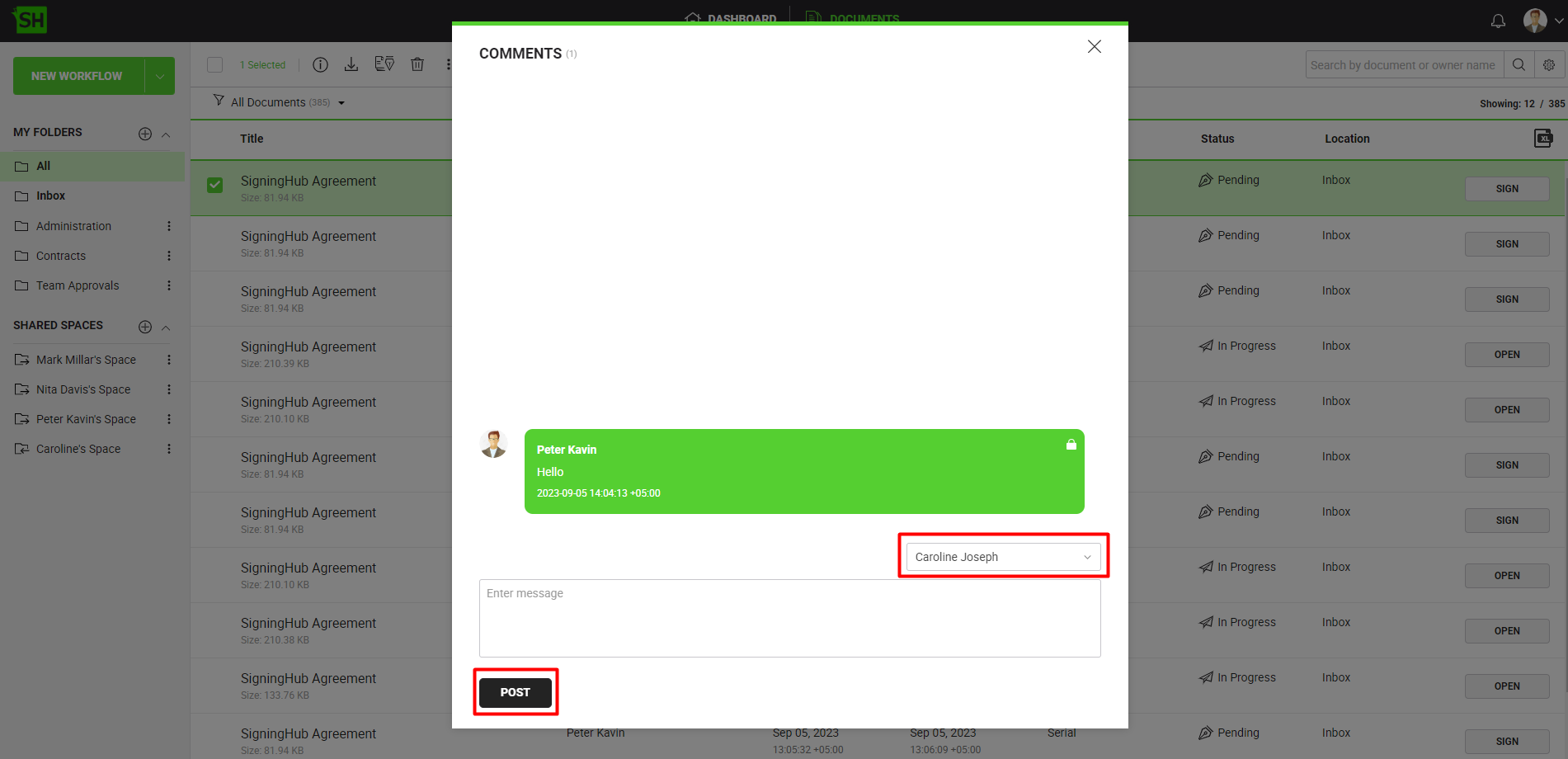 - From your documents list, locate and select the document to post a comment.