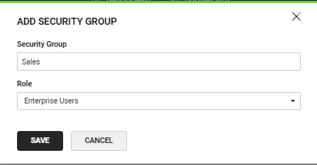 from the Security Group grid header. The "Add Security Group" dialog will appear.