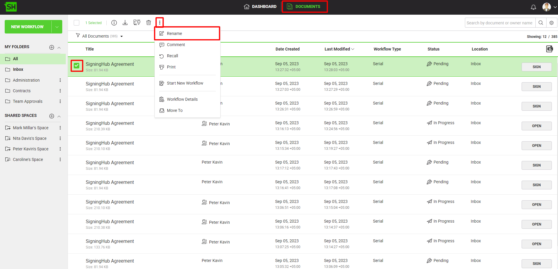 - From your documents list, locate and select the document(s) package to rename.