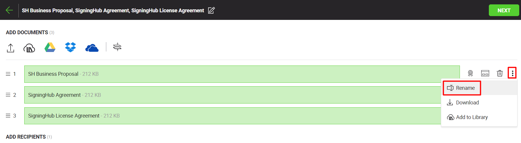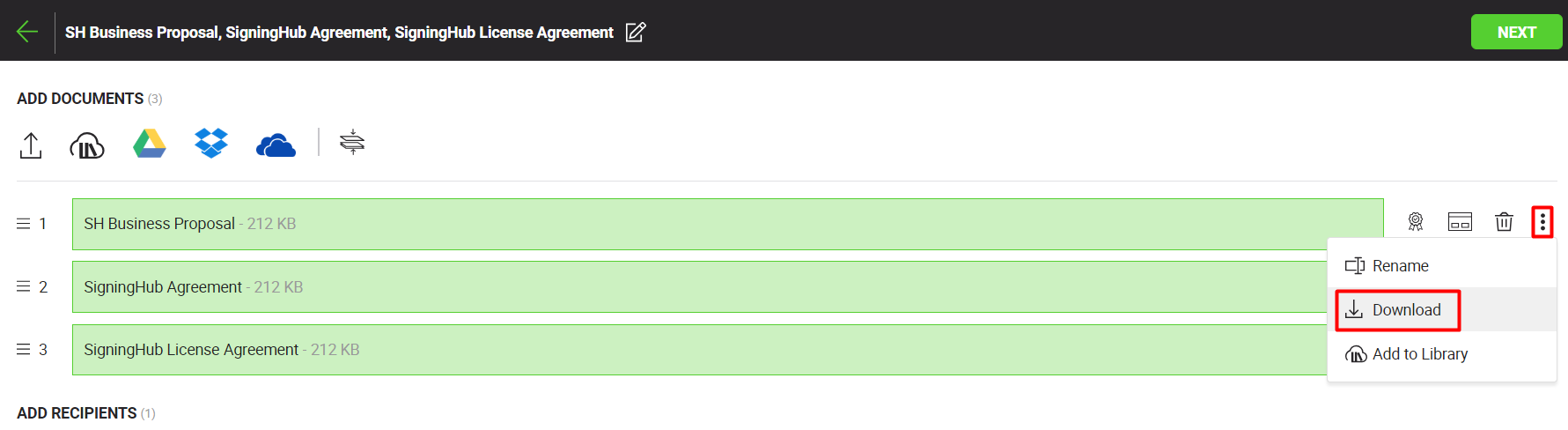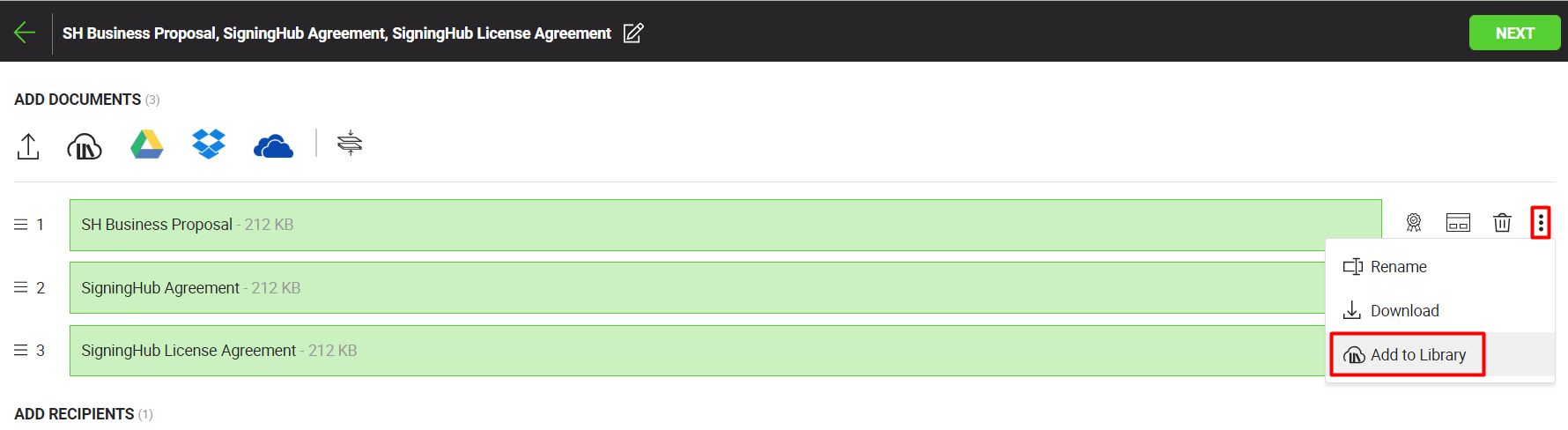 Save a document in SigningHub library