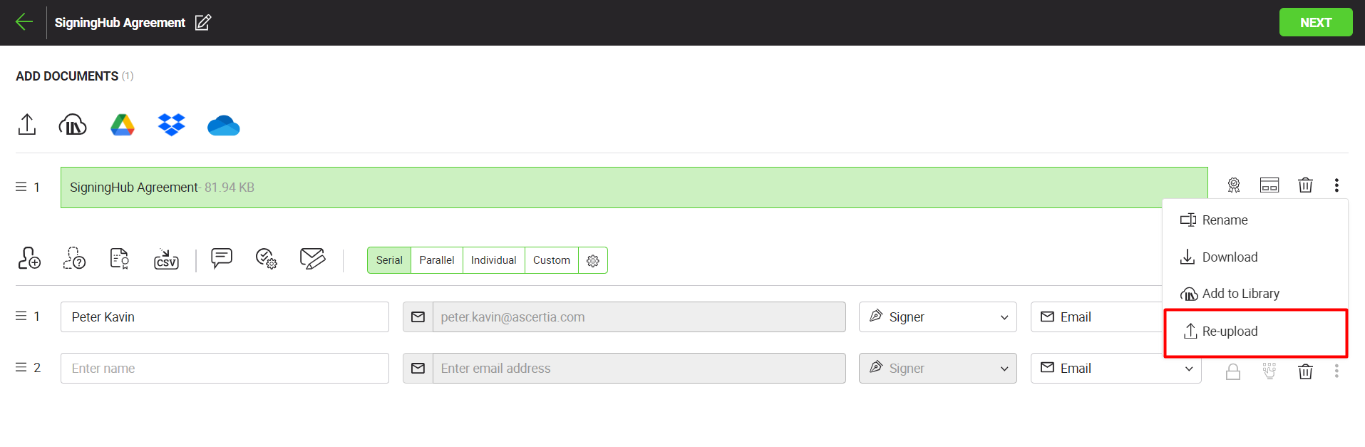 Re-upload a document