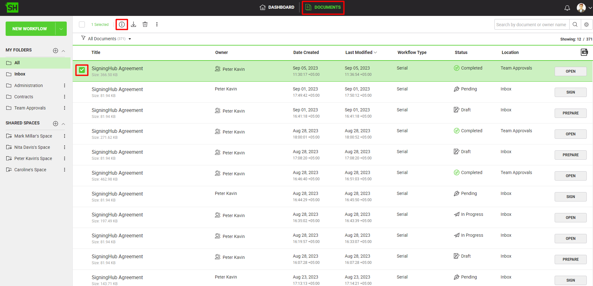 - Click the "Documents" option, available at the top of the SigningHub screen.