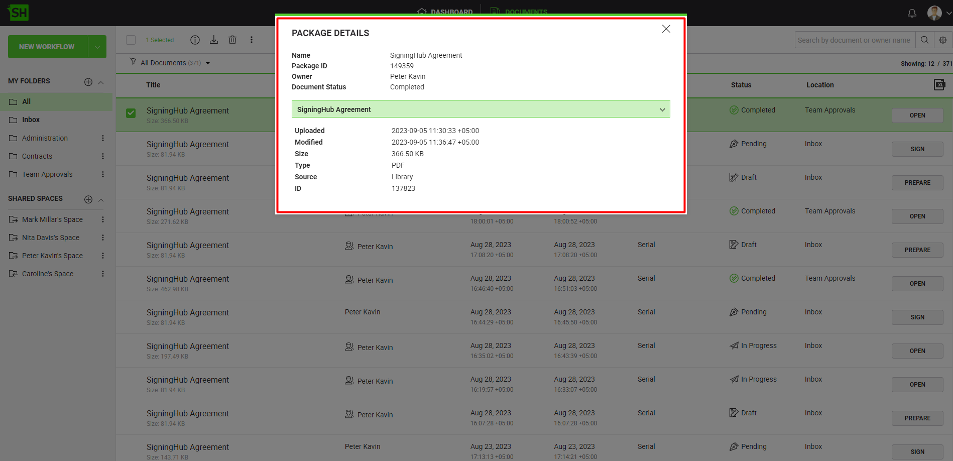 At times you need to look for the other details of a document(s) package that are not visible on the document listing screen, i.e. package ID, owner name, when it was uploaded, source, etc. The "Package Details" option lets you do so, and is available for all the documents having any status in a workflow. This option is also available on the document viewer, while processing a workflow document.