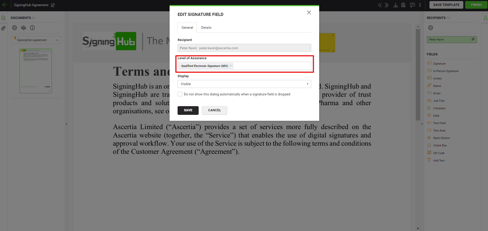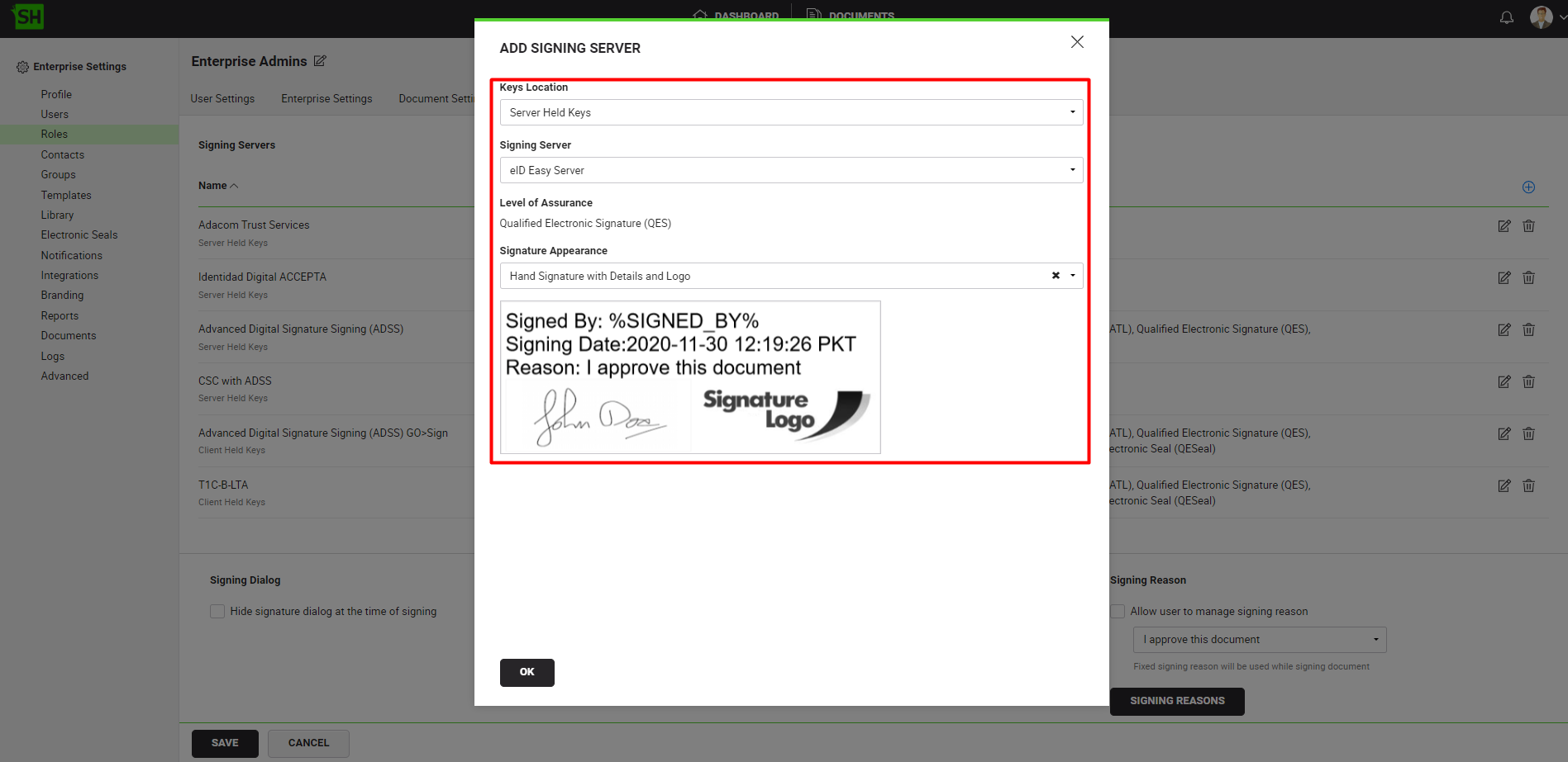 - Allow the QES Level of Assurance against a User Role in SigningHub Web
