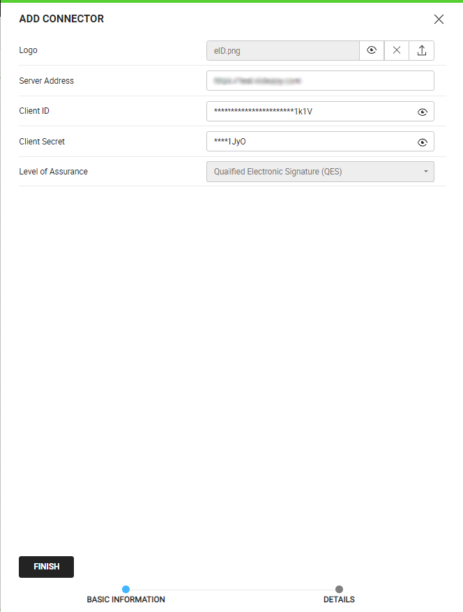 - Select the eID Easy Connector created earlier, in the highlighted field below: