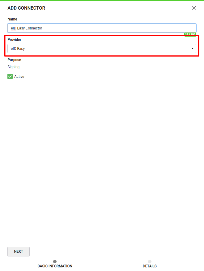 - In the "Basic Information" section, choose "eID Easy" as the "Provider".